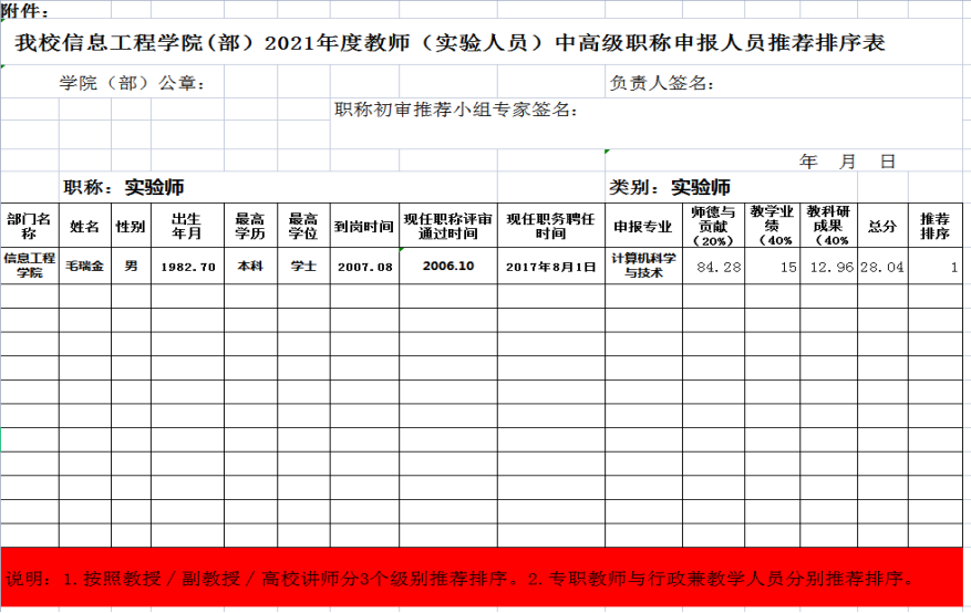 我院本次申报中高级职称共5人,其中申报教授职称1人、副教授职称1人、讲师2人、实验师1人。经太阳成集团tyc33455ccww职称初审推荐工作小组讨论审议,本着公平、公正、公开的原则,对各申报人师德与贡献、教学业绩和教科研成果的各项内容进行审核, 5人符合职称初审要求,并将审核结果公示如下。