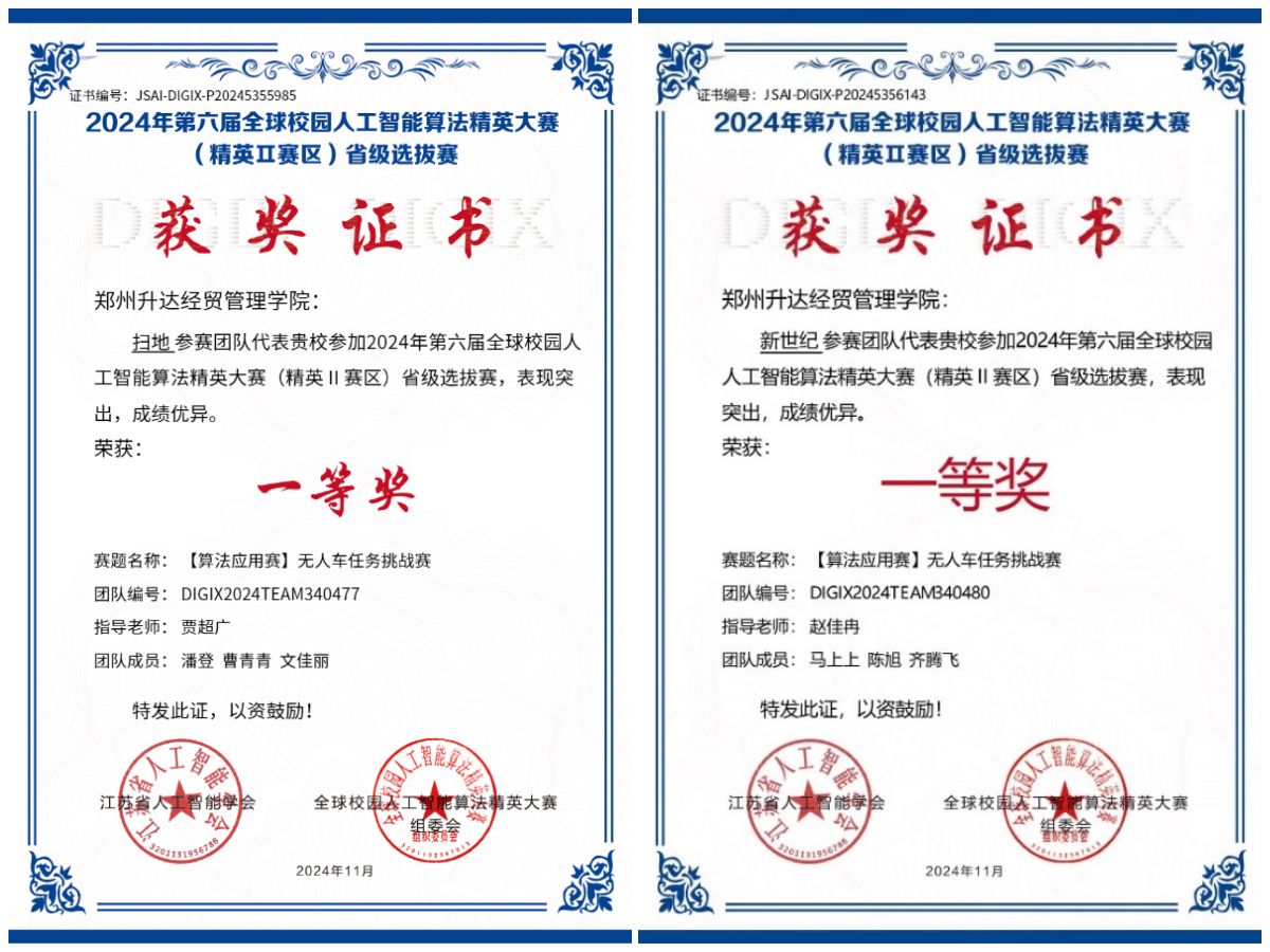 近日我校太阳成集团tyc33455ccww组织参加了2024第六届全球校园人工智能算法精英大赛,共有八支队伍代表学校参加此次比赛,并于10月21-24日的省级选拔赛中获得省一等奖2项、省二等奖2项,其中4支队伍突围进入全国总决赛,并于11月16日-18日在全国总决赛中获得国家一等奖2项、国家三等奖1项。
