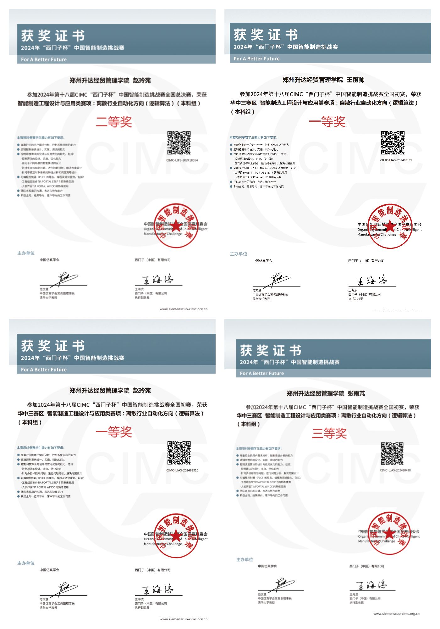 近日,第十八届CIMC“西门子杯”中国智能制造挑战赛全国总决赛在浙江湖州落下帷幕。我校学子在全国初赛(华中三赛区)中获得一等奖2项、三等奖1项的好成绩,并有1支队伍成功晋级全国总决赛,最终在在离散行业自动化(逻辑算法)赛项取得全国二等奖的好成绩。