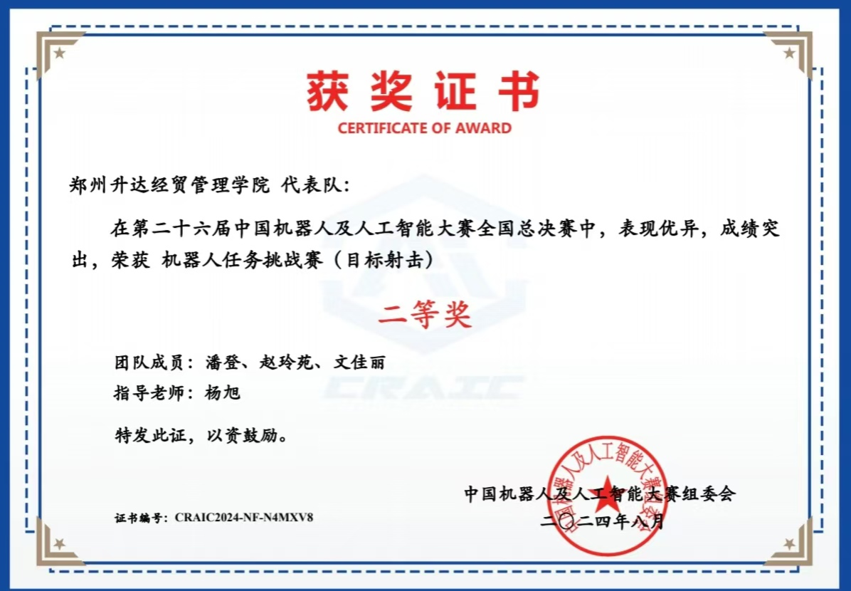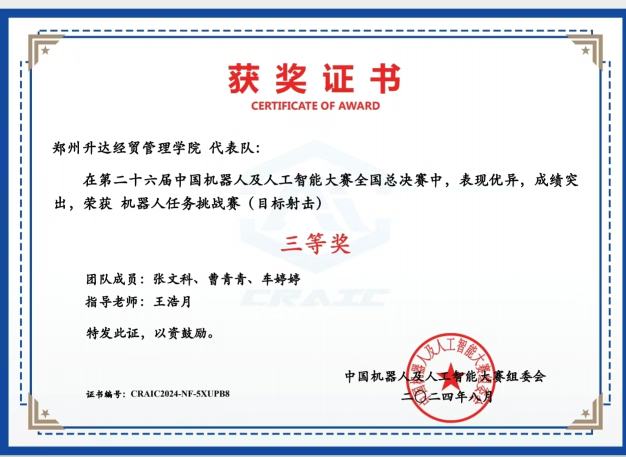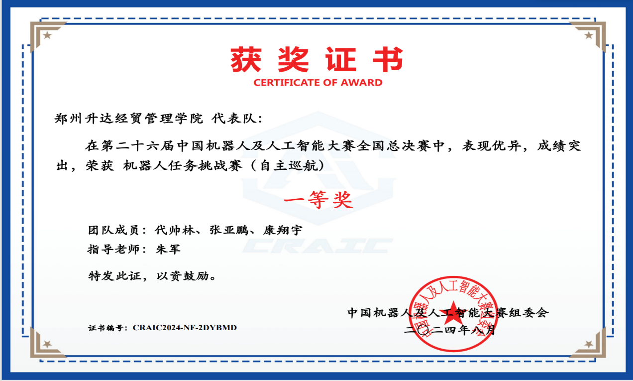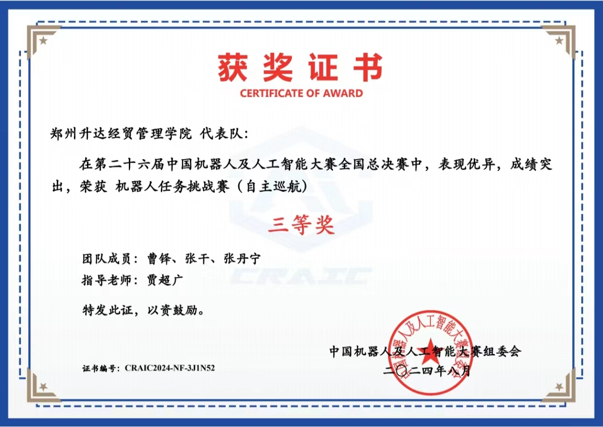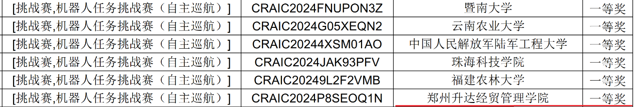 近日,我校太阳成集团tyc33455ccww组织参加了2024第二十六届中国机器人及人工智能(CRAIC)大赛,4支队伍冲进全国总决赛,并于8月19日-8月22日在全国总决赛中获得国家一等奖1项、国家二等奖1项、国家三等奖2项。