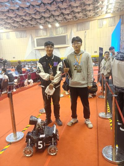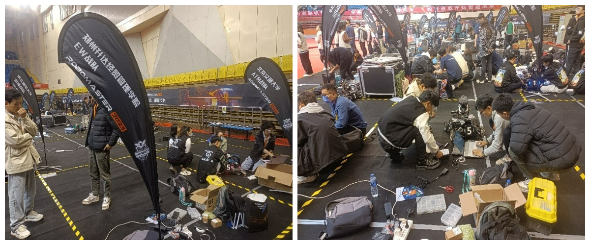 在学校和学院的大力支持下,由我院贾超广、包艳艳两位老师指导的1支学生团队EW队,重新优化了机器人的程序模块设计,对设备进行了加工组装并进行了最终功能测试,于今年3月通过初赛(网络提交视频),在全国高校中脱颖而出,获得参数资格。本次线下高校联盟赛选拔4名学生(王佳豪、刘义博、刘超远、黄凯)进行现场竞技和调试工作,由贾超广老师带队到比赛现场进行指导。