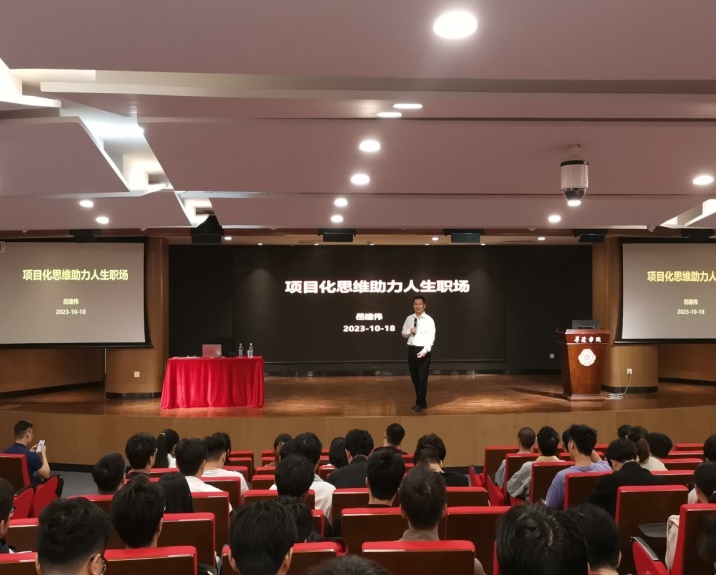 随后,岳建伟校友用项目化思维为切入点助力毕业生应对职场,对于大部分毕业生目前还处于观望和迷茫的状态,岳建伟校友给出了重要的引导,用生动的实例深入阐述了“你是谁?”“企业喜欢谁?”“培养啥?”三个毕业生急迫需要思考并解决的现实问题。帮助毕业生分析并认清目前严峻的就业形式,以及如何有效提高毕业生自身的专业能力、学习能力、抗压能力、沟通能力及适应能力,使得他们在求职应聘及在今后的工作岗位中能够更具竞争力。