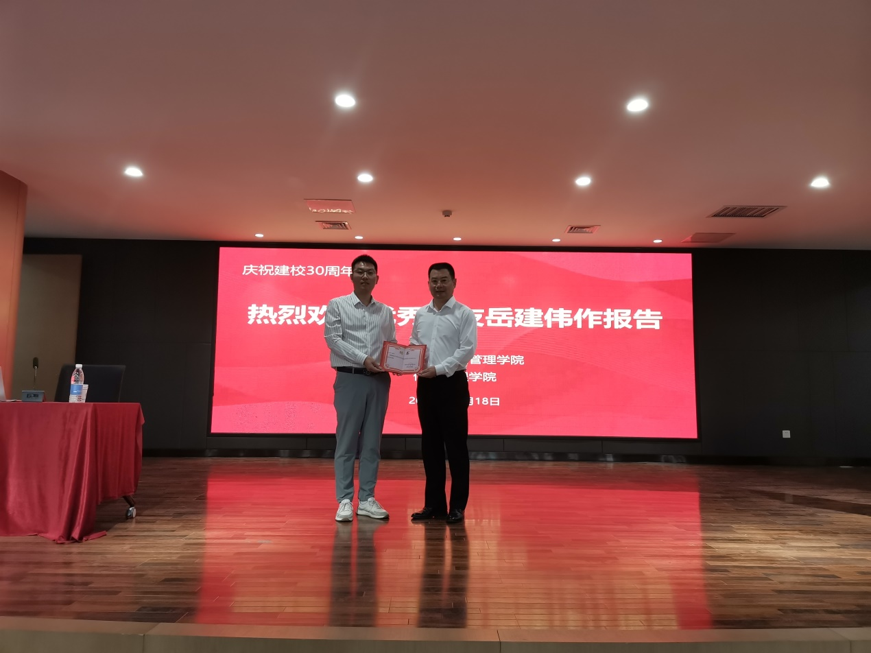 最后,岳建伟校友将“张开翅膀、追逐理想”、“只要路是对的,就不怕路远”两句深含寓意的话送给所有24届毕业生,期望他们能够在将来的求职应聘中快人一步,高人一筹,早日落实人生的又一条征程。