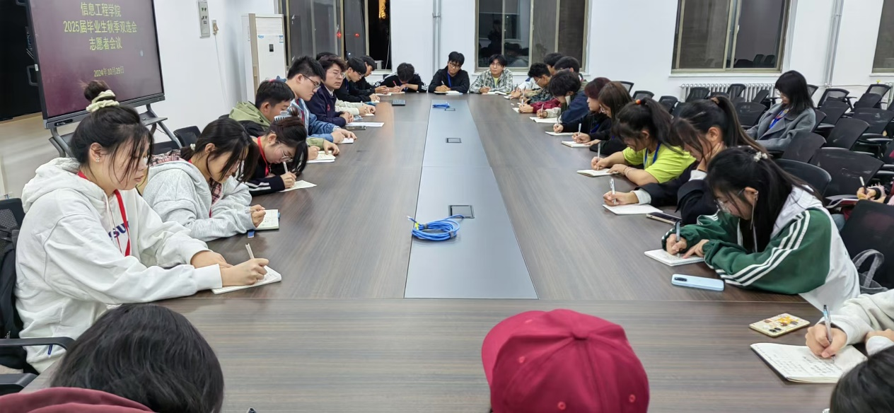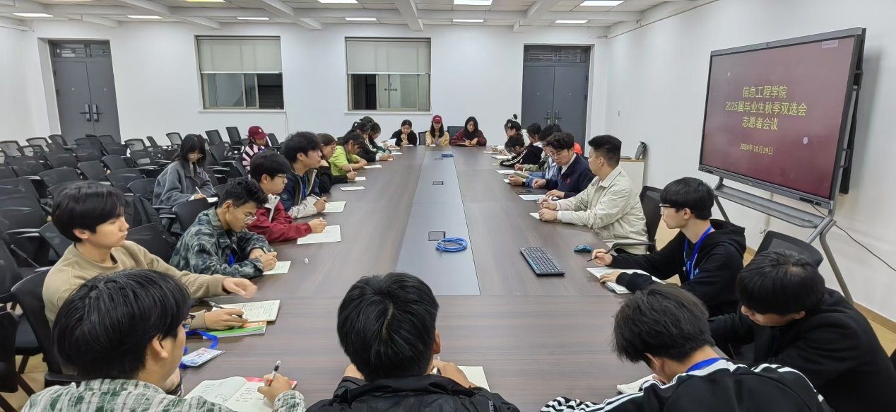 10月29日傍晚6点,商管楼218会议室灯火通明,太阳成集团tyc33455ccww2025 届毕业生秋季双选会志愿者会议在此隆重举行。本次会议由信工学院朱辉星老师主持,众多热情洋溢的志愿者们齐聚一堂,为即将到来的双选会积极筹备。