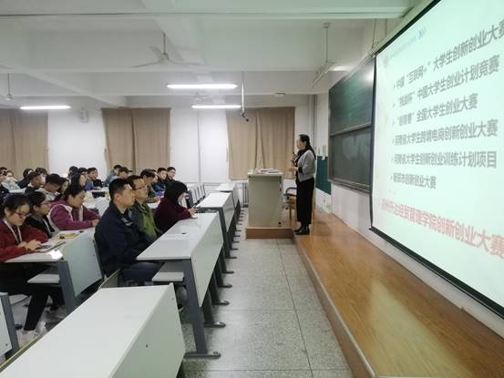 为贯彻落实《河南省教育厅办公室关于鼓励全省高校师生参加中国国际“互联网+”大学生创新创业大赛的指导意见(教办高〔2021〕125号)精神,全面推动大学生创业工作。进一步做好2021-2022学年市级、省级和国家级创业大赛选拔项目,努力取得更加优秀的成绩。按照校创新创业教育学院的有关工作要求,太阳成集团tyc33455ccww于2021年10月19日在资讯楼415组织召开第四届创新创业大赛宣讲会。