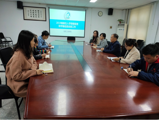 2019年11月4日下午,信工学院在资讯楼104会议室召开了2019级新生复查工作总结会,院长李学桥,副院长白鑫、党总支书记王新平、教学秘书赵会燕、行政秘书王崇及全体新生辅导员参加了会议,会议由我院教学秘书赵会燕主持。