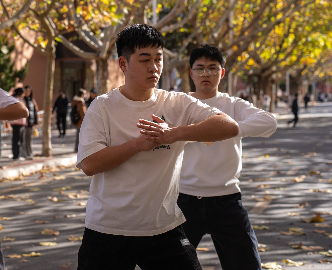 国歌唱响,全体师生身姿挺拔,目光专注,激昂的旋律在校园上空回荡,每一句歌词都饱含着对祖国的热爱与敬意,将红色情怀深深扎根于每个人心间,也为这场马拉松注入了深厚的精神力量。歌声余音未了,太极拳表演登场,一招一式尽显沉稳,动作如行云流水,刚柔并济间展现出中华传统武术的魅力,同时达到了很好的热身效果,也彰显出红色文化与传统文化交融的独特氛围。