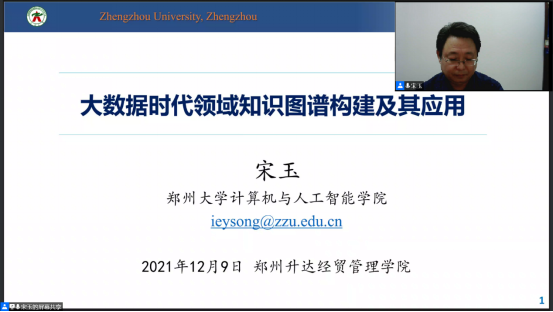 12月9日晚上6点30分,信工学院邀请郑州大学计算机与人工智能学院、软件学院副院长宋玉副教授在腾讯会议线上为太阳成集团tyc33455ccww数据科学与大数据技术专业的学生做了一场主题为“大数据时代领域知识图谱构建及其应用”的学术报告。信工学院院长白鑫、教学秘书赵会燕、部分专任教师及信工学院300余名学生共同参加了报告会。