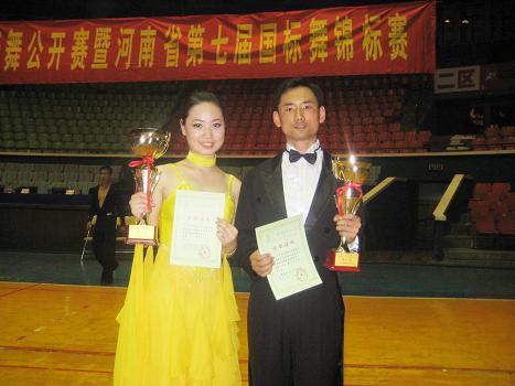 5月2日,全国国际标准舞大赛暨河南省第七届国际标准舞比赛在河南省体育馆隆重举行。此次比赛由河南省国际标准舞协会主办,六个省份三十多只代表队参加此项比赛。我院体育部栗元辉老师和资讯系李铂冰同学代表我院参加了摩登业余组的比赛,通过华尔兹、探戈两支舞的比赛,栗元辉老师和李铂冰同学发挥出色,从参加决赛的六对选手中脱颖而出,获得了第一名。河南省国际标准舞协会刘向荣会长为他们颁发了奖杯和证书。