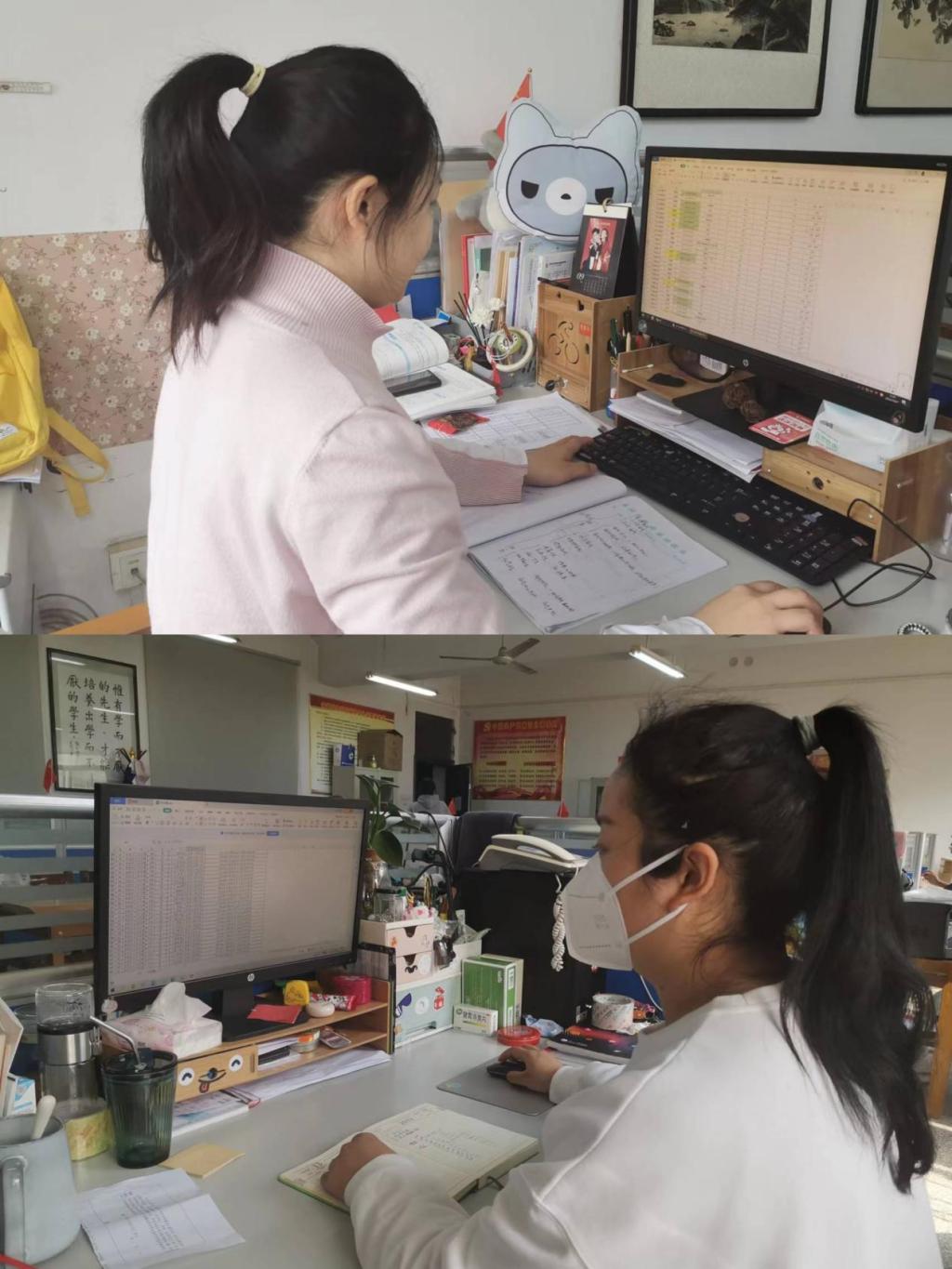 “同样的事情重复做,重复的事情用心做,每天保证所有学生的双码、核检、体温等数据全部上报完毕,我们才安心。”信工辅导员高珊珊说。在这个没有硝烟的战场上,作为疫情防控信息通讯员的辅导员们,每日从早晨工作到深夜,进行在校生摸排、健康日报告信息等数据上报,建立以年级、班级、宿舍为单位的“排查—报告—反馈”机制,逐一确认、逐条核实、准时上报,力求各项数据填报及时准确,精确筑牢疫情防控“数据防线”。同时,还要密切关注疫情最新动态,及时转发官方通知、权威消息,宣传正确的防控方法,鼓励同学们适当锻炼、科学防控,不信谣,不传谣,不制造恐慌。