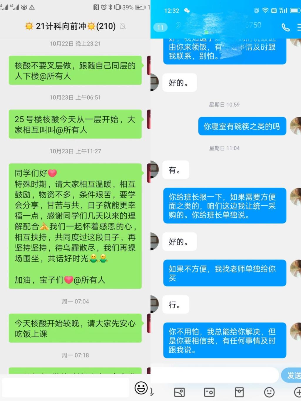 连日来,信工学院张现水书记和白鑫院长深入一线,靠前指挥,包干到楼。行政秘书王崇每天不仅要协调物资,来回奔波,还要组织学院辅导员开会,反复翻看若干工作群,确保所有的消息通知到位,所有学生核酸检测全部完成,饭菜到位。
