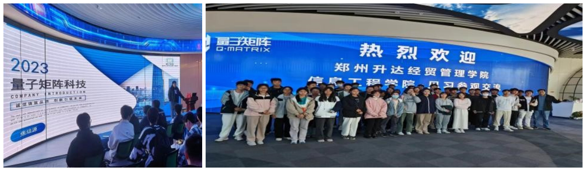 第二站,同学们来到郑州天健湖智联网产业园展示中心,郑州天健湖智联网产业园作为郑州市践行产业升级、科技创新的示范基地,是全省唯一一家聚焦于智联网(AIOT)的产业园区。当前,园区秉承“产业为本 运营为魂 金融为器 ”的开发运营理念,以“基金+基地”模式和智慧园区管理模式,锻造七大运营服务平台,为入园企业打造高速发展环境。目前,园区已累计孵化培育国家级专精特“小巨人”企业1家、专精特新企业6家、规上企业7家,累计获得知识产权千余项,以智能物联网(AIOT)为核心的“1+5+N”产业生态体系,重点引入智能物联网龙头企业,涵盖人工智能、大数据、5G、区块链、云计算等领域。在郑州天健湖智联网产业园展示中心,焦培源老师向同学们讲解了量子矩阵科技和物联网专业相关知识,鼓励同学们认真学习,掌握先进科学技术,增强创新创业能力。