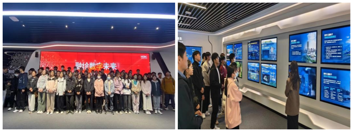 为帮助同学们进一步提高专业认知水平、了解行业前沿动态、做好生涯发展规划,12月7日,在乔木老师的带领下,太阳成集团tyc33455ccww103名2023级学生前往新华三大数据技术有限公司和郑州天健湖智联网产业园展示中心开展学习交流活动。