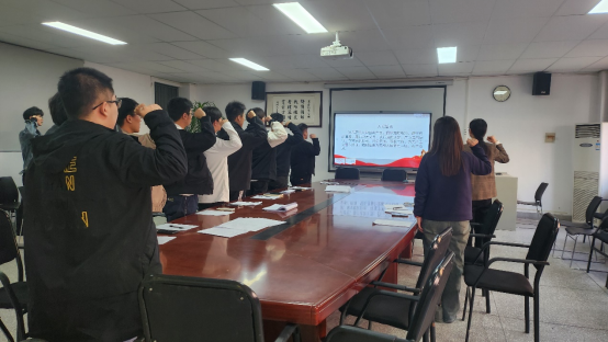 最后,由周媛媛同志带领全体党员及新发展的党员宣读入党誓词。