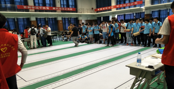我校参赛队员在交叉足机器人的比赛现场等待检录