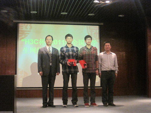 近日,由杭州华三通信技术有限公司(简称:H3C) 举办的“H3C杯”2011年全国大学生网络技术大赛在北京航空航天大学正式落下帷幕,经过激烈角逐,来自北华航天工业学院、广东理工职业学院、南京邮电大学、北京航空航天大学、河北工业职业技术学院等院校的20只代表队分获大赛不同奖项,资讯系仵进、王俊强同学喜获二等奖,勇摘银牌,是我省各高校唯一跻身决赛并获奖的团队,为我院赢得了荣誉。