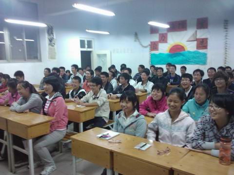 9月21 日晚,自勉堂410教室里歌声嘹亮,鲜花竞艳,气氛热烈,掌声如潮,资讯系“2010级新生爱国歌曲合唱比赛”在此如期举行。