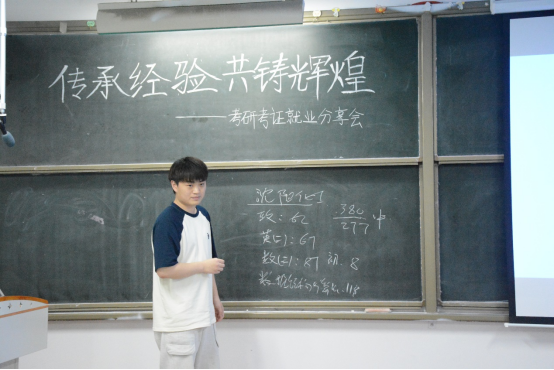 会上,毕业生学生代表李沛琳、华成信、邹春旺分别围绕专业选择、备考规划、就业、求职准备、求职过程等方面进行了分享和指导。在交流环节,同学们认真提出了自己的疑问,面对大家的提问,学长、学姐们悉心分享了自己的考研、考证、就业经历和心得体会,并结合自身经历和复习方法进行了详细说明,为同学们答疑解惑,分享会问答氛围十分活跃,同学们对考研、考证以及就业的过程有了更具体更清晰的认识,获得了更多关于学习方面的经验与技巧,有利于我院低年级学子明确未来目标和各阶段重点,进一步增强了信心,为学院提升考研、就业率奠定了基础。