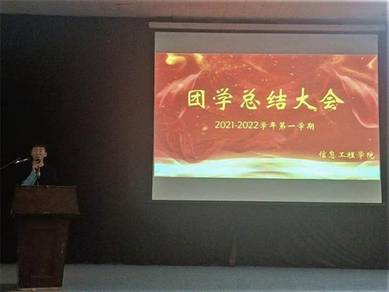 2021年12月16日晚上七点,信工学院团委学生会在龙湖报告厅举行了期末总结大会,信工学院全体团学成员参加了本次会议。