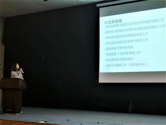 所有部门做出总结之后,团委副书记耿亚辉同学向团学成员们做出了这一学期部门活动的总结,并希望各个部门继续努力。副主席代雅笛同学也给同学们进行了补充总结,希望全体团学成员不忘初心,砥砺前行。