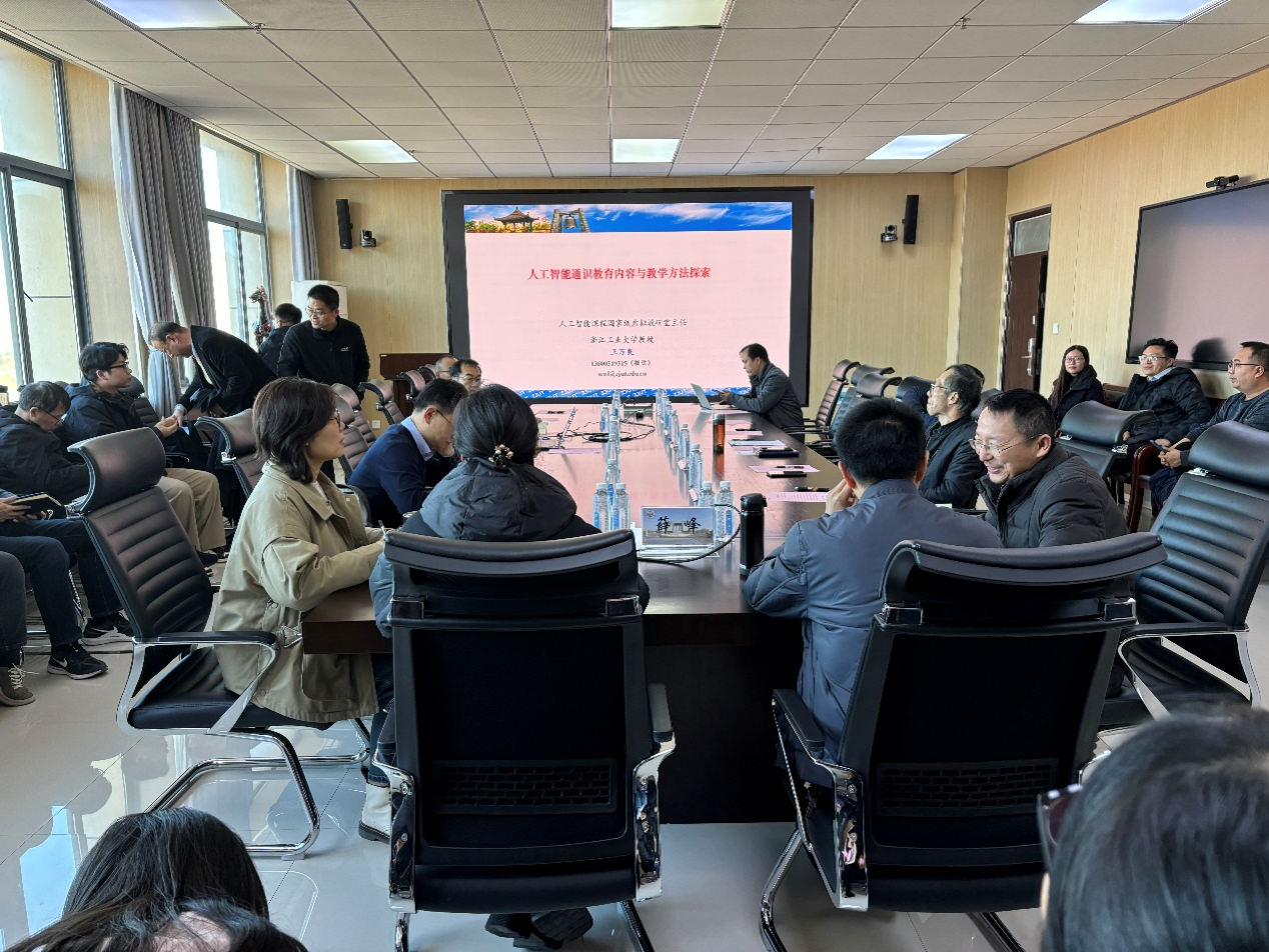 讲座旨在通过深入探讨人工智能通识教育的理念、内容、方法及资源建设,为教育工作者提供新的思路和启示,进一步推动人工智能通识教育的普及与优化。主讲人王万良教授首先就“人工智能的诞生与发展”进行了阐述,从人工智能的起源、发展历程到当前的技术热点,为大家勾勒出一幅清晰的人工智能发展蓝图。其次,从“人工智能的突破”入手,详细剖析了人工智能在各领域的最新应用成果和未来发展趋势。他强调,人工智能通识教育应紧跟技术前沿,不断更新教学内容,以满足社会对高素质人才的需求。在随后的讲座中,大家深入探讨了人工智能通识教育的理念、内容、方法及资源建设。提出人工智能通识教育应注重培养学生的计算思维和问题解决能力,通过案例教学、项目实践等方式,激发学生的学习兴趣和创新潜能。同时,王万良教授还分享了国家级一流课程与虚拟教研室建设的宝贵经验,以及在国家级优秀教材编写方面的成功案例,为教育工作者提供了有益的参考和借鉴。