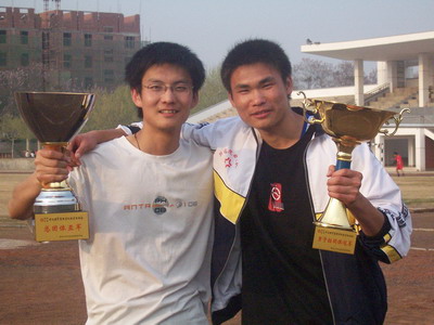 谈到蔡武光,大家总是有许多话要讲。我们采访他昔日的队友时,他说:“当时我听到蔡武光以50秒4预赛第一的身份跑进决赛时我就想这回有戏了,因为平常训练和比赛它最好的成绩只有53秒9,这个成绩是今年院九运会上他自己创造的校男子400米的记录。可是一到大学生运动会的赛场他一下子就把成绩提高了3 秒多,让人感到特别惊喜。决赛时我想就这个成绩怎么也能拿个奖牌回来,没想到一切尽然是这么完美,出乎所有人的预料,他以49 秒9 的成绩夺得了冠军,真让人太高兴了。要知道,这可是咱校参加大学生运动会以来夺得的首枚金牌,意义非同凡响。后来我们想想,觉得这一切也理所应当。蔡武光平时训练十分的刻苦,三年来,每周三次一个半小时的训练风雨无阻。不仅如此,为了备战这次大学生运动会,五一放假他都没有回家,在学校和队友进行训练。那时天气特别热,每天上下午要各训练4 个小时。难度可想而知,可是他早就憋着一股劲,每天的训练总是特别认真,一点也不偷懒。自己一人默默地承受训练的枯燥和艰苦。再加上他本人具有良好的天赋,这才成就了他今日的辉煌。”