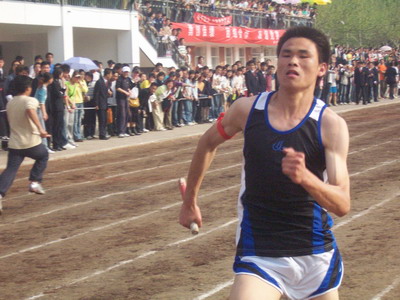 高高的个子,清爽的短发,黑瘦的脸庞,开朗的笑容,赛场上的“拼命三郎”以一副阳光男孩的形象出现在我们面前。他,就是校运动会男子100米,200米,400米跑三项冠军,河南省第十九届大学生运动会男子400米跑的冠军——蔡武光。
