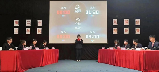 为塑造良好校园文化氛围,丰富大学生校园生活,同时培养我院辩论人才,2023年4月12日晚上6点半,由信工学院团委学生会学术部主办的辩论赛决赛在龙湖报告厅成功举行。