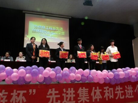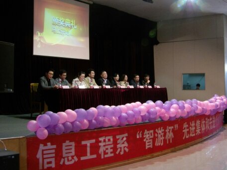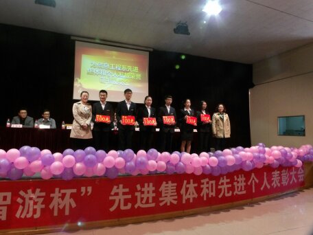 为发挥先进的示范作用,倡导优秀的班风、学风和创业意识。本学期,信工系对2015-2016年第一学期涌现出来的先进集体和个人进行了评选。3月31日下午一点半,信工系“智游杯”先进集体和个人颁奖大会在龙湖报告厅进行。出席会议嘉宾有校企合作单位---智游集团副总经理孙圣杰先生;系领导老师有信工系主任李学桥教授、党总支王新平书记、教学秘书白鑫老师、行政秘书兼团委书记张娟老师、2015级团总支书记李磊老师、辅导员崔晓宁和王保进老师。