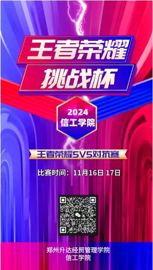 为丰富同学们的课余生活,营造积极向上的校园氛围,信工学院电竞社将举办一场王者荣耀挑战杯电竞比赛,为热爱电竞的同学搭建展示风采的平台。