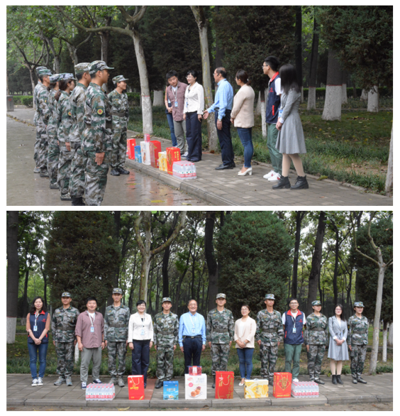 9月12日中午,信工学院院长李学桥教授,党总支王新平书记,副院长白鑫副教授、行政秘书兼团委书记王崇老师和19级辅导员老师一行来到我院军训场地,看望慰问正在军训的教官和19级新生。