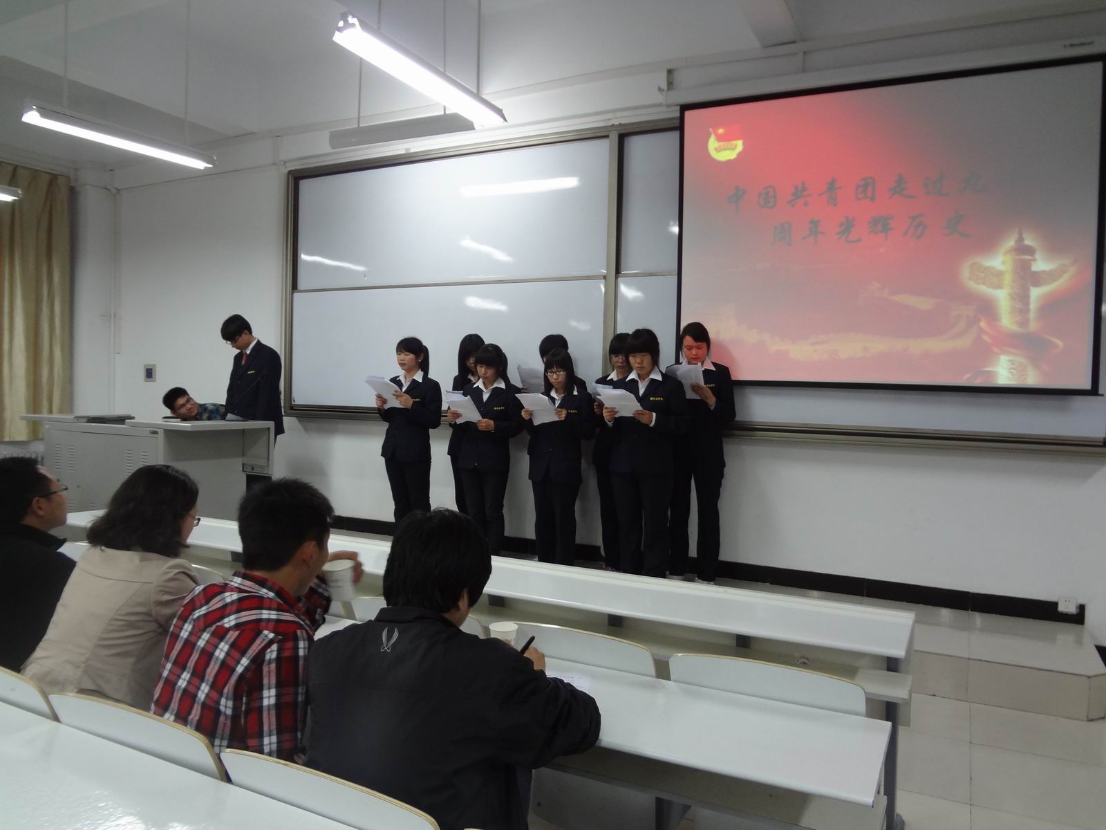 比赛在11级信管软工班精心制作的幻灯片中拉开帷幕,班级代表声情并茂的朗诵“信软信念”,让大家由衷的体会到团支部的团结和坚持。11级电信二班的“同一个梦想”用精彩的照片和话剧表演将同学的互帮互爱表现得淋漓尽致。10级电信二班精心准备的诗歌朗诵和幻灯片一一“共青团的光辉历程”让我们深深感受到了共青团的伟大,深切体会到身为共青团员的光荣。11级电信一班寻着一起走过的足迹,记录着“一路走来”的点点滴滴,歌曲“相亲相爱一家人”直达我们的心灵深处。10级电信一班的“我们的故事”从生活学习中的点滴小事展现了“我们是一家人”,用心表达彼此间团结的精神、奋进的力量,真情朗诵之后的歌舞表演“铭记中国心”更是将现场的气氛引入高潮。11级计科班用语言表达了他们对建团90周年的祝福,单口相声《忆峥嵘岁月》和小品《我要加入中国共青团》幽默诙谐地表达了他们对团的热爱,嘹亮的歌声《歌唱祖国》使同学们热血沸腾,爱国之情萦绕心头。