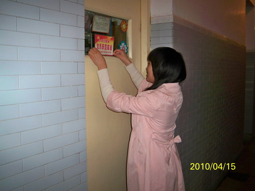 会议结束后,各支部分头到宿舍楼张贴“党员示范宿舍”标识牌。