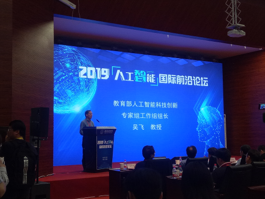 论坛会上,包为民院士从系统智能的概念入手做了《智能控制技术发展的思考》的专题报告,为人工智能发展的框架以及未来发展的趋势、相关领域的发展方向做了简单的总结,并对目前比较前沿的算法进行分析,为人工智能课程的知识结构以及专业课程提供了基本的指导与引领。浙江大学吴飞教授从大数据分析的层次入手做了《大数据智能:从关联学习到因果分析》的汇报,突出强调了人工智能与大数据的关系,并从大数据智能的处理方向介绍“大数据”与“小数据”的处理过程中的关联问题。北京大学张大庆教授做了题为《迈向毫米级的WIFI与4G/5G非接触人体智能感知:理论与应用》,介绍了利用人体周边的WIFI信号做非接触式的行为检测与分析,从发射端到接收端信号变化来反推中间过程的人体动作行为的变化情况,建立相应的模型,根据4G/5G信号波长的变化情况可以做到实时监测与判断,在老年人智能行为分析上有较大的指导意义。
