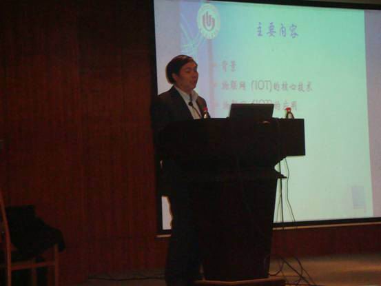 2010年11月23日晚七点,资讯系邀请郑州轻工业学院计算机学院院长、硕士生导师甘勇教授在外语一号楼一楼多功能报告厅作了一场题为《物联网关键技术及应用》的专题学术报告。资讯系主任冷建华教授、部分专业课教师、辅导员老师以及近二百名同学听取了本次报告。