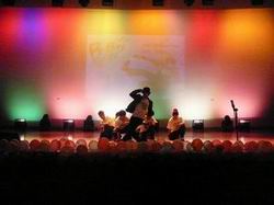 在互动环节中,同学们踊跃参加,将现场的气氛推向高潮。随后的的《民歌联唱》,博来了场下观众经久不息的掌声。接着,书画表演配合诗朗诵——《翰林漫笔》,则让观众享用了一场书画艺术大餐。苍劲的书法,栩栩如生的绘画,饱满而又富有激情的朗诵,无不让台下观众为之叫好。相声《谦虚论》和小品《我们都很忙》,更是给现场带来阵阵的欢声笑语,把晚会推向了高潮。最后,晚会在《爱因为在心中》的美妙旋律中落下帷幕。