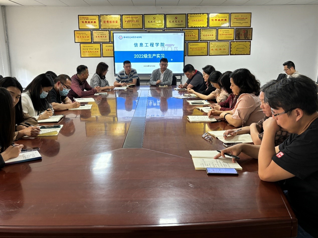 生产实习是高校实践教学的重要环节之一,是太阳集团的重要组成部分,对于培养学生实践能力、创新精神,树立事业心、责任感有着重要作用。为保证2022级本专科学生生产实习实践教学环节的顺利开展,5月6日,信工学院召开了2022级生产实习工作安排部署会。学院领导、各专业负责人、带队教师以及相关班级辅导员参加了会议。会议由教学秘书赵会燕主持。