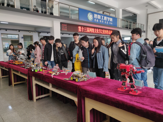 为进一步营造浓郁的大学生创新氛围,激发大学生对科技的兴趣,使同学们感受到网络文化节的魅力所在。信工学院在第十三届“青春心向党 建功新时代”网络文化节启动之际,在资讯楼大厅举办信工学院优秀科技作品展。