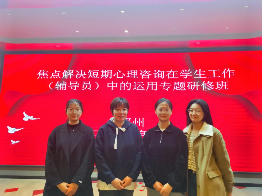 为进一步提升辅导员心理危机干预能力及学生访谈技巧,扎实推进育人工作,信工学院厉祎、王淼、苏昕悦、杨亚丽4名辅导员参加2023年4月22日至23日在郑州举办的焦点解决短期心理咨询在学生工作(辅导员)中的运用专题培训会,本次专题培训会特邀我国著名心理咨询专家,浙江大学二级教授、博士生导师马建青为主讲嘉宾。