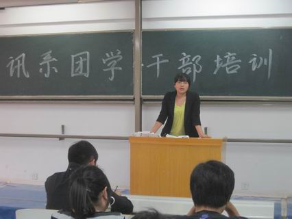 9月9日下午1:00,资讯系团学干部培训系列活动之——聆听报告在资讯楼112教室如期举行。本次培训的主要内容是由党总支副书记王新平老师和我系行政秘书、团委书记陈刚老师给大家作报告。资讯系全体团委学生会干部成员参加了这次培训。 首先,在大家热烈的掌声中由陈刚老师为大家作了一场题为《如何更好地做好团学干部》的报告。陈老师结合实例,生动形象地从多个方面进行了阐述。他讲到:做好团学干部要有牺牲精神,自觉接受工作的锻炼;要掌握正确有效的工作方法。他还着重谈到了做好团学干部的前提——如何做一名合格的团学干部,即要努力提高思想境界、道德修养、学习能力、组织能力、表达能力、社交能力、管理能力等方面的素质要求。