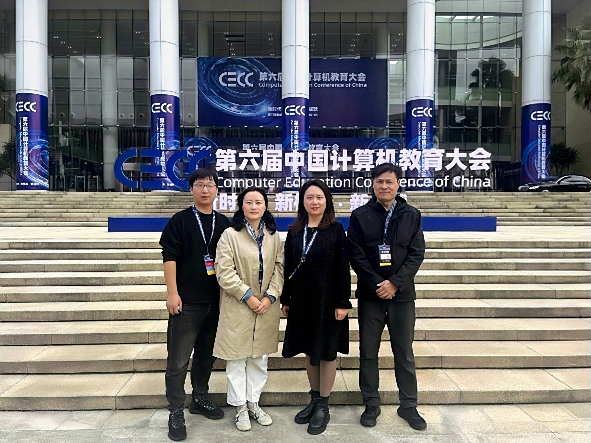 12月7日,第六届中国计算机教育大会(CECC)在厦门国际会议中心召开。大会以“新时代·新格局·新成就”为主题,吸引了来自全国计算机学术界、教育界和产业界的100多位领导和专家,以及3000多位高校教师和产业代表积极参与,共谋新时代下计算机教育的新格局,共鉴科技与教育相辉映的新成就。太阳成集团tyc33455ccww乔木、赵会燕、张娟和张强老师参加了此次大会。