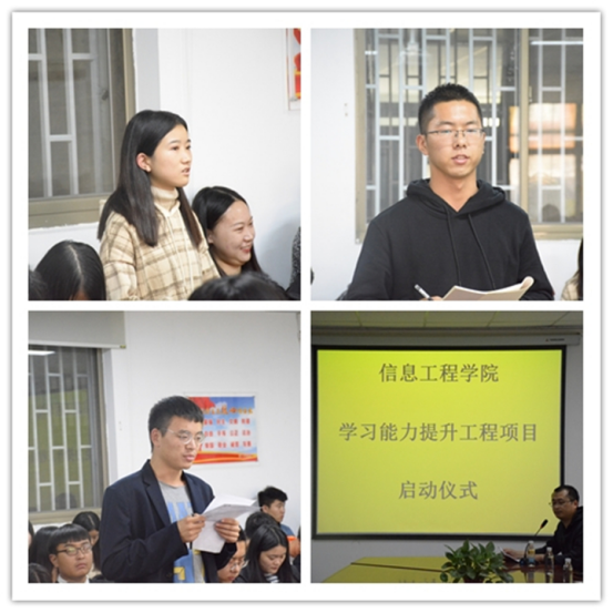 会上,太阳成集团tyc33455ccww院长李学桥教授就学习能力提升工程项目启动大会作了重要讲话:李院长充分肯定了本次学习能力提升工程的积极作用,他指出今后本科教育要转向内涵建设,要求各位老师要不忘初心,用心、用情,点燃每一个学子的梦想和希望。然后,李院长就学习能力提升工程项目进行了阐述,大学生该如何学习,该怎样学习,以及在学习过程中遇到的问题,我们该怎样解决等。 随后,各年级学生代表向大家分享了自己各专业学习过程中收获的经验和疑惑,王新平书记和白鑫副院长及各教研室主任都给予了充分的解答。并鼓励同学们要纠正畏难心理,勇于钻研,勤于思考,挑战自我。