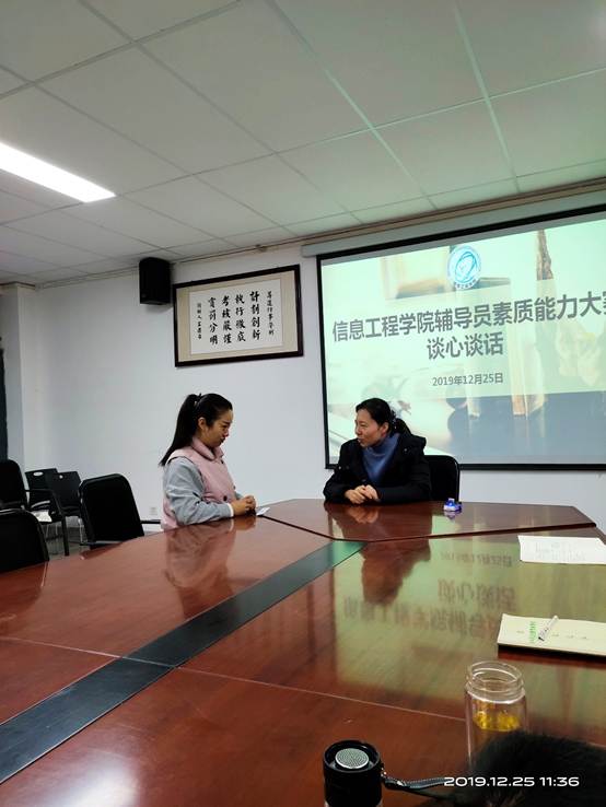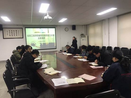 12月26日上午,信工学院全体辅导员在资讯楼104会议室进行了主题班会环节比赛,该环节主要采取PPT+演讲的方式进行。