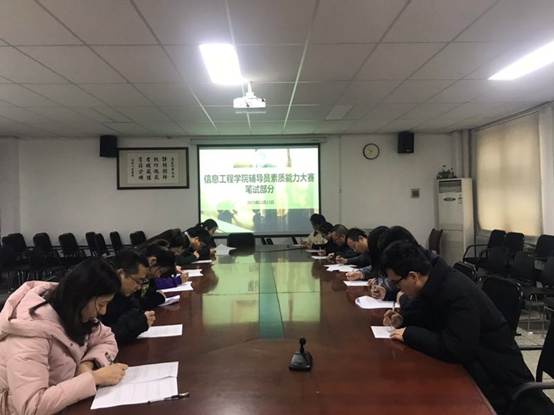 2019年12月23日下午,信工学院全体辅导员在资讯楼104会议室进行了笔试测试。