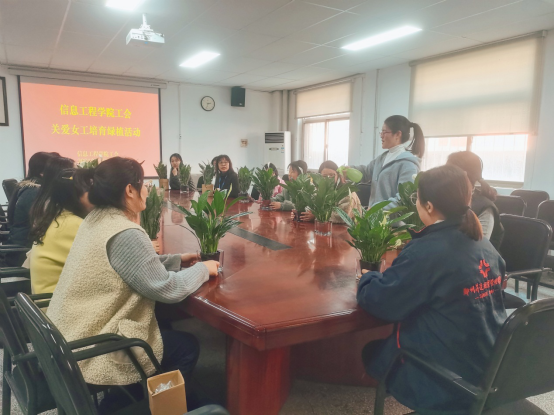 我院工会特为全体女教职员工精心挑选了绿色植物“一帆风顺”,同时杜老师为大家讲解了绿植的培育方法。