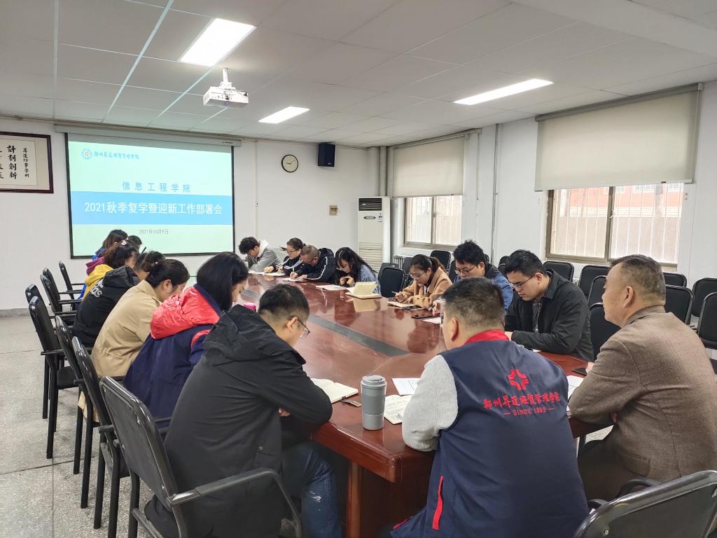 2021年10月9日上午九点,太阳成集团tyc33455ccww在资讯大楼会议室召开了2021秋季复学暨迎新工作部署会议,信工学院党委书记张现水、行政秘书王崇及信工全体辅导员参加了会议。会议由行政秘书王崇老师主持。
