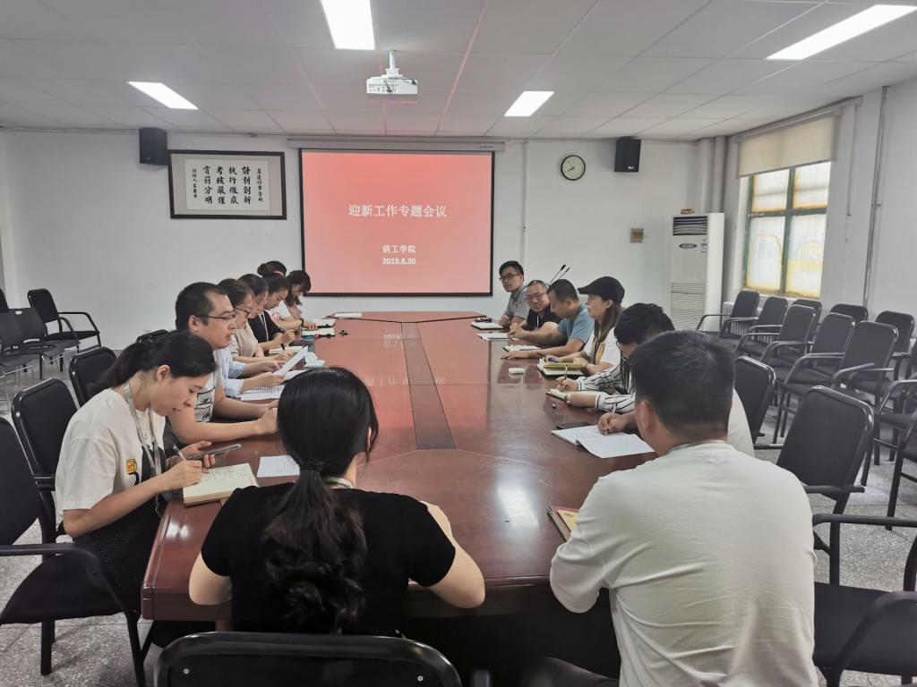 新学期新气象,8月30日上午11:30,信工学院在资讯楼会议室顺利召开了2019级专升本和本科迎新迎新工作专题会议。出席本次会议的有信工学院党总支王新平书记、行政秘书王崇老师及全体辅导员。会议由王崇老师主持。