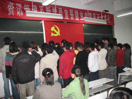 在新党员宣誓仪式结束后,业余党校开课,由我系学生第三党支部书记石明顺老师为入党积极分子讲了第一课。(资讯系 苗淑娟 李斌)