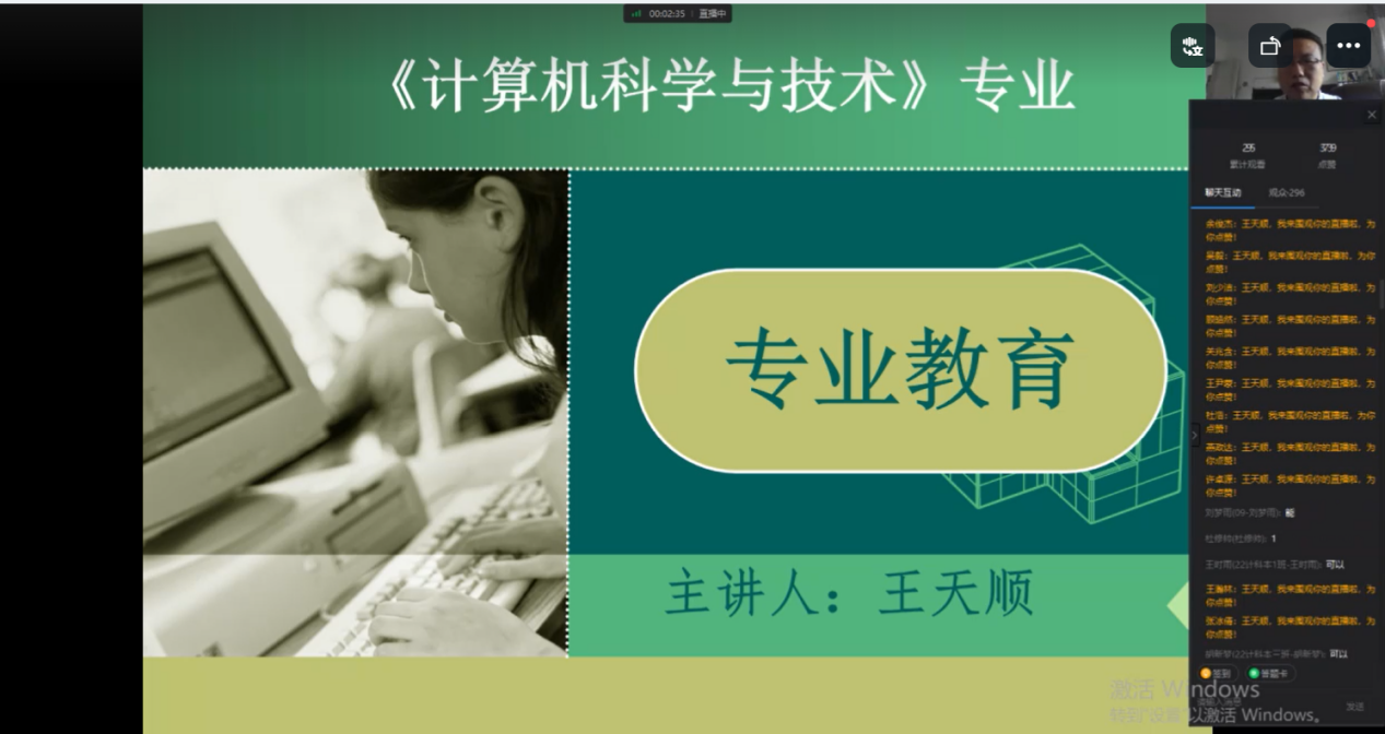 为帮助计算机专业本专科新生更快适应大学生活、帮助同学们更好地了解本专业基本情况,树立正确的学习目标,迈向精彩的人生,计算机科学与技术教研室主任王天顺老师于9月21日下午通过钉钉直播的方式对2022级本科、专科新生进行了新生专业教育,全体2022级新生参与。
