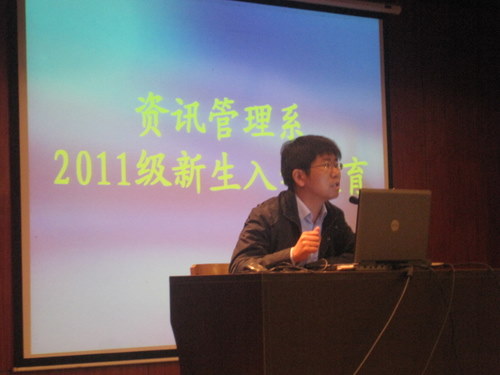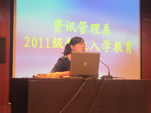 新生入学教育是整个大学教育的起点,也是大学生打好基础,完成角色转变,树立学好本专业信心的重要阶段,更是大学生形成纪律观念、行为准则的关键时期。为此,在紧张有序、内容丰富的全院新生入学教育开展的同时,资讯系于9月28日上午8:00,在外语1号楼一楼的多功能报告厅进一步对全系2011级新生进行了入学教育,本次入学教育由我系教学秘书白鑫老师和行政秘书兼团委书记陈刚老师主讲,由辅导员袁保华老师主持。